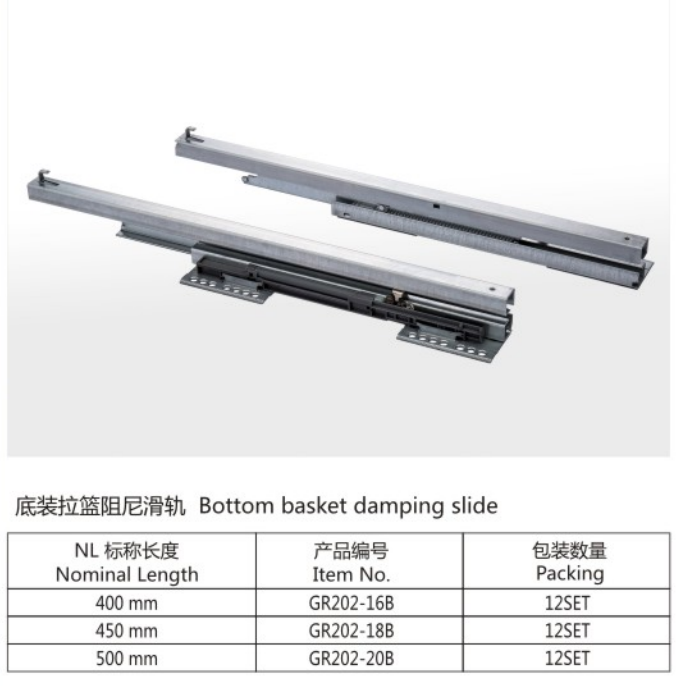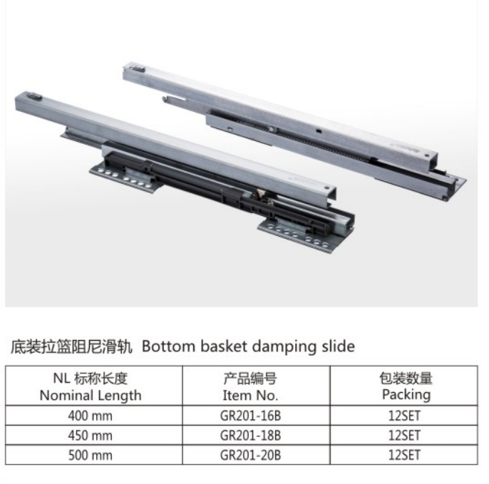 Bottom Installation Basket Concealed Slide with Dampingcan be used for kitchen cabinet and wardrobe etc.. Especially good for the under-lighted bedroom, utility room and cloakroom etc..